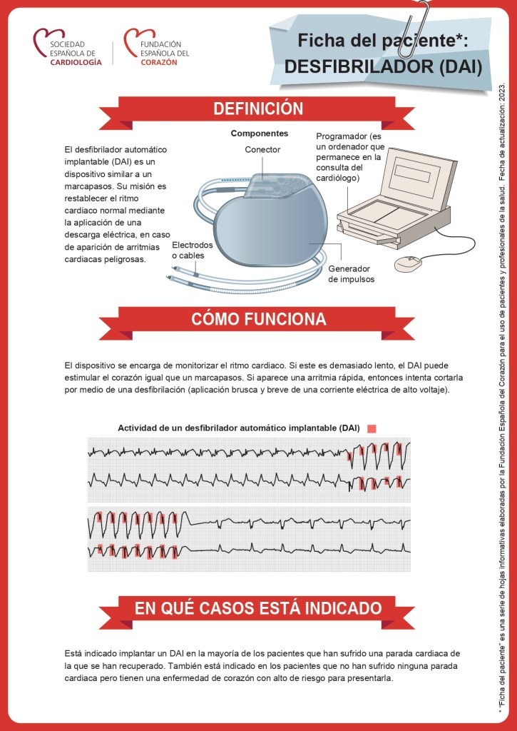 La SEC pone a disposición de los pacientes con un DAI el manual “Vivir con un DAI”, que ofrece información detallada sobre el funcionamiento del dispositivo, así como una serie de precauciones que les permitirán llevar una vida normal.